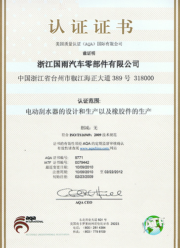 Four production bases have been set in Taizhou City of Zhejiang Province, Pudong District of Shanghai City, Fengxian District of Shanghai City and Gaochun District of Nanjing City, for producing three series products: Motor Wiper System (wiper blade, wiper refill, and motor wiper system), Rubber Parts and Oil Seals.